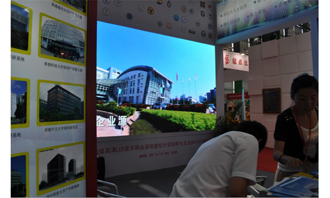 On May 18-21, 2012, the 8th China (Shenzhen) International Cultural Industry Fair was held in Shenzhen Convention and Exhibition Centre. During this period, the characteristics of cultural industries from all over the country gathered at the Shenzhen Convention and Exhibition Centre all show brilliant. Shenzhen Virtual University Park bringing its cultural characteristics attended the Fair, and DXVISION sponsored the Fair screen of Virtual University Park.
