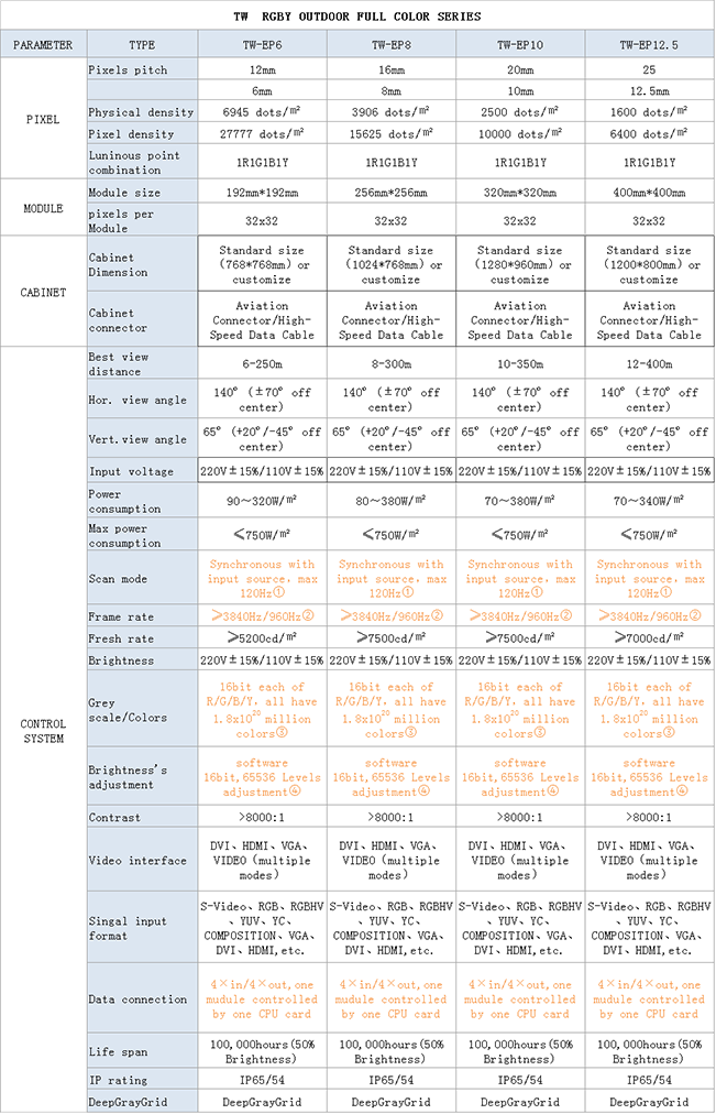 ![]() | Unique RGBY technology The RGBY LED display can not only vividly demonstrate yellow and gold that can’t be showed actually by traditional RGB LED display, but also enhance the expressive force of blue.By doing this, the image will be truer and more details. |
