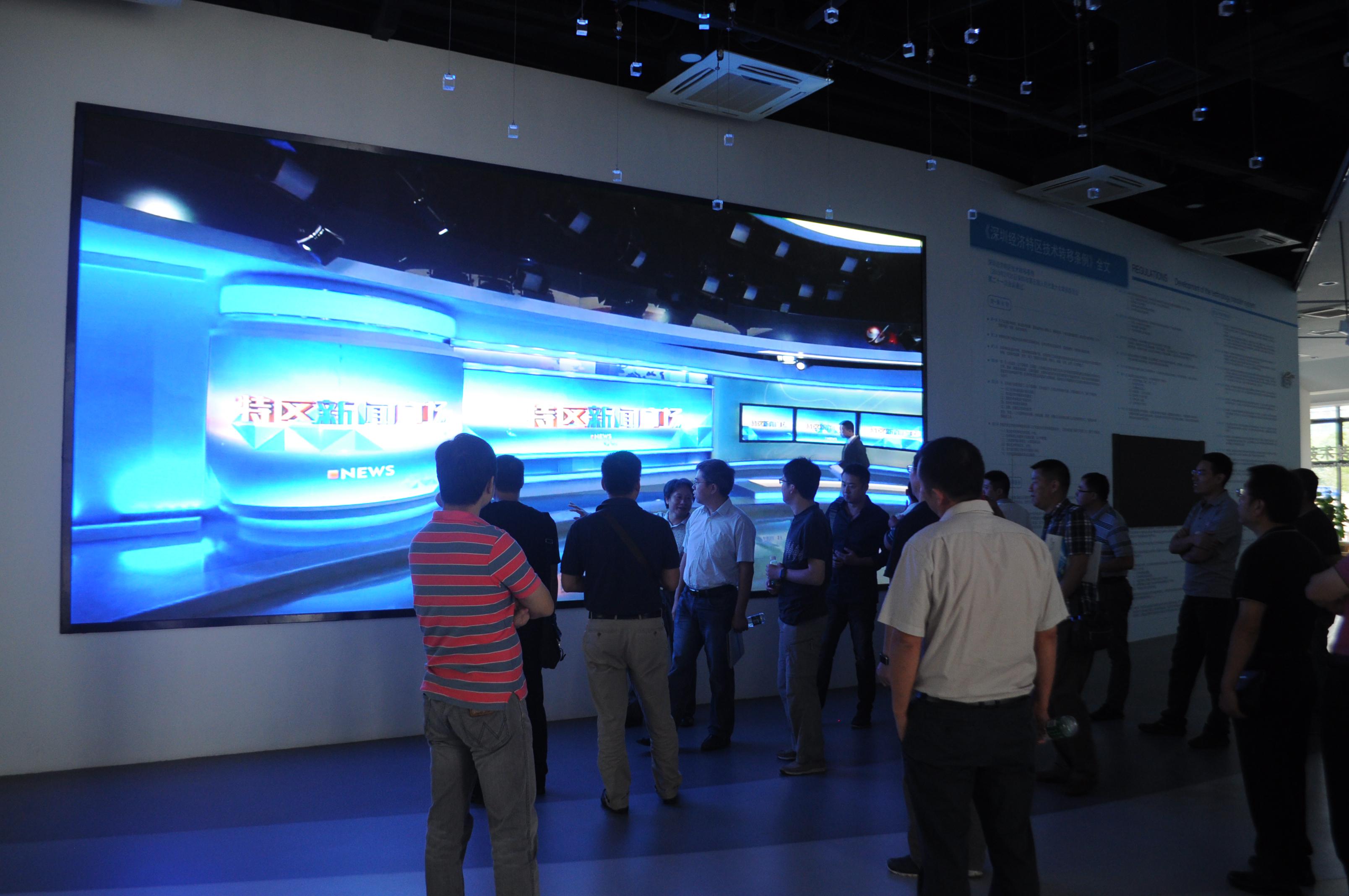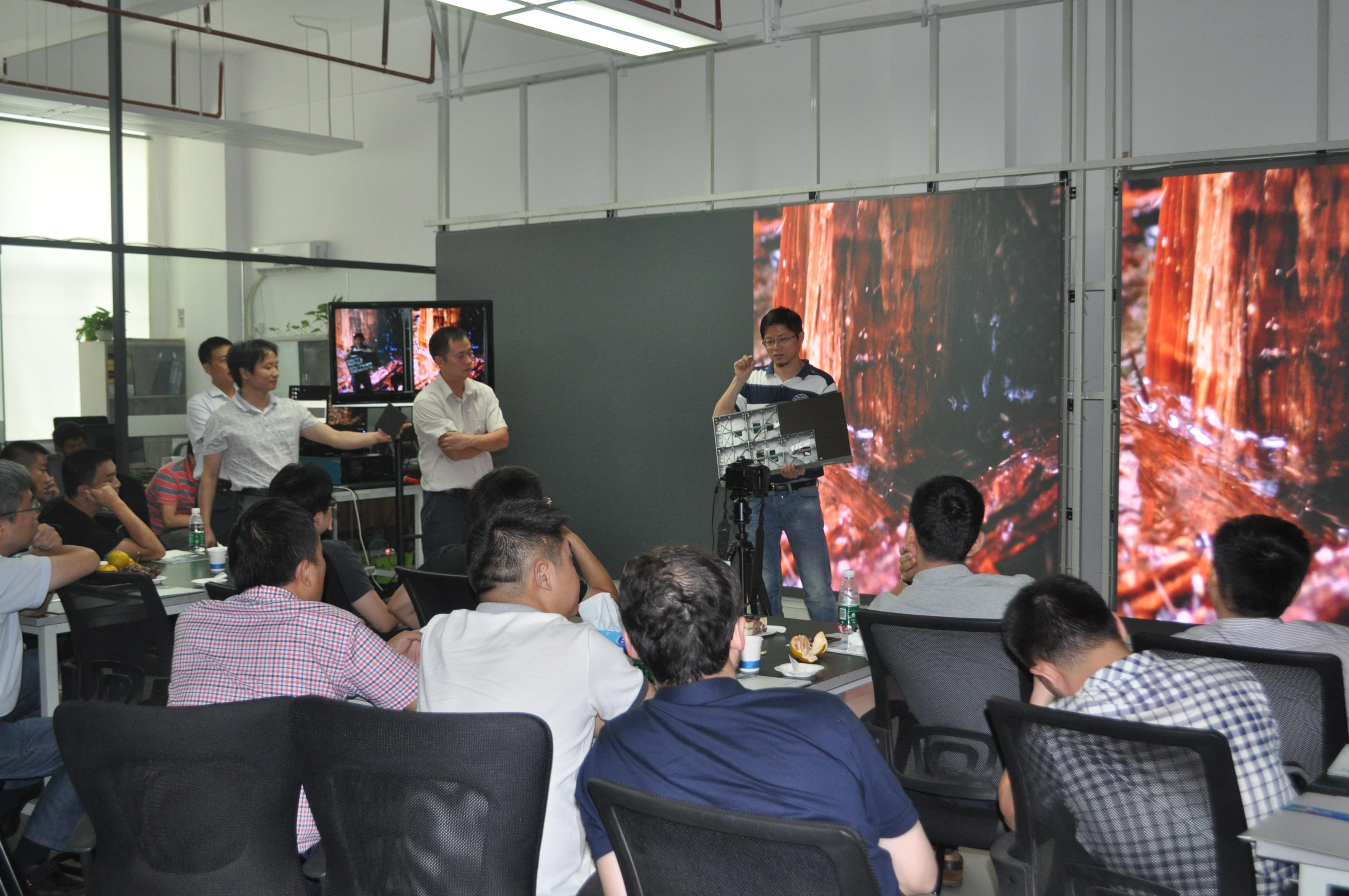 2015年10月25日,索贝数码科技股份有限公司代表莅临深圳市大象视界有限公司参观并开展技术交流会。大象视界总经理李惠富,技术总监吴兵,营销总监莫坤鹏等公司领导出席会议。本次交流会以“LED屏幕+演播室应用”为主题,就LED屏幕电视台演播室应用的前沿动态和发展前景、大象视界广电级屏幕TV系列产品技术特点等主题进行深入交流与探讨。