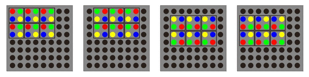 大象视界创新的电子像素,是将原始图像通过四色配比算法传输到LED显示屏上的四颗灯上,同时通过“全新扫描控制和高速数据传输能力”,使得分时复用的像素点是从原始图像完整获得的,从而实现在有限的显示面积内可显示的图像精细程度真正提高4倍。