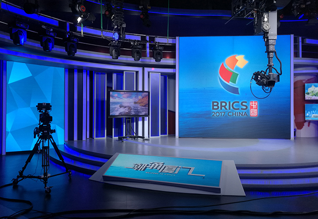 在金砖会晤期间,厦视一套、二套、三套、厦门卫视十余个小时不间断直播,厦门广电集团新闻中心200平新闻演播室、厦门卫视400平演播室以及厦门会晤新闻中心前方演播室都投入到了直播中,所有的直播间共计十四块LED大屏,均采用大象视界TV系列网格链路产品,在呈现完美显示效果的同时,系统稳定性也经受住了重要场合的长时间直播考验。