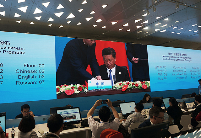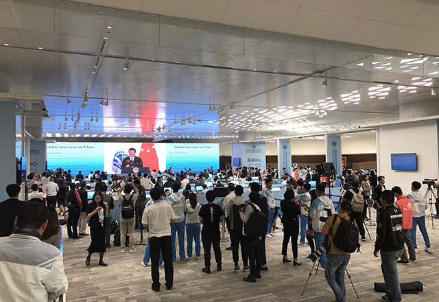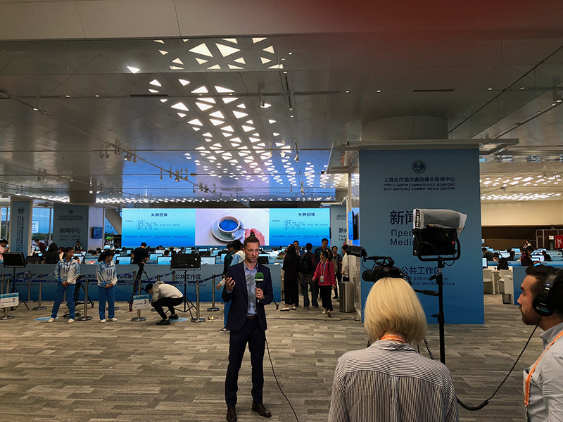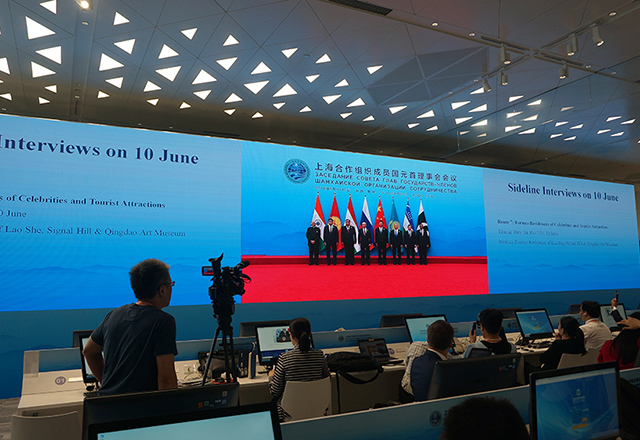 6月9日,上海合作组织成员国元首理事会第十八次会议将在山东省青岛市举行,这是上合组织扩员后的首次元首峰会。国家主席习近平将同上海合作组织其他7个成员国、4个观察员国领导人,以及联合国等国际组织和机构负责人共商合作大计。上合组织青岛峰会新闻中心已经正式启用,各国媒体记者齐聚峰会新闻中心,大象视界LED大屏直播了迎宾晚宴主席讲话以及焰火晚会。
