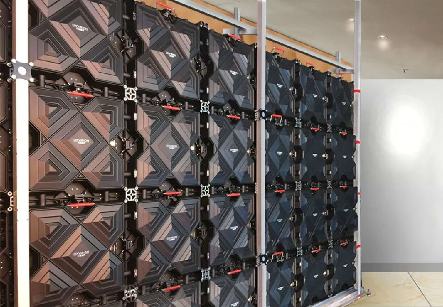 户外全彩LED显示屏在往高密度发展,屏幕尺寸小型化,安装位置落到地面。传统户外LED显示屏因为需要防水,往往采用后维护方式,其背后需要比较宽的维护通道,无法做到超薄和美观。针对这种情况,大象视界研发了户外前维护LED显示屏,并申请了发明专利。大象的户外前维护显示屏可以从正面拆装,做到箱体、电源、系统、模组全防水,目前最小点距3.91mm,屏幕最薄可以到100mm,并且可以做90°转角,可以方便在户外楼面安装,可以包柱子。