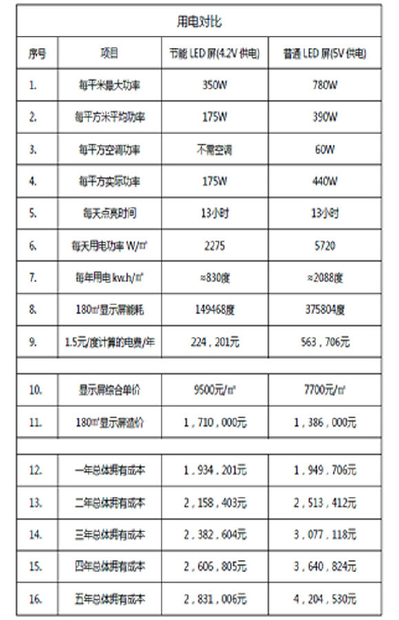 节能LED显示屏与普通屏5年保修期总体拥有成本对比