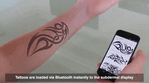 在电子墨水发展之前,动态图像的显示需要有恒定的电流,并且显示屏的寿命和电源有不可分割的关系。与其他很多可植入或者可穿戴技术一样,在体内置入一个显示屏会受到电池功率的制约。然而电子墨水仅仅在显示内容发生变化时才会消耗能量,而不是需要恒定的电流来保持图像。因此我们可以在皮肤上创建这样的一个屏幕,它的能量消耗微乎其微。