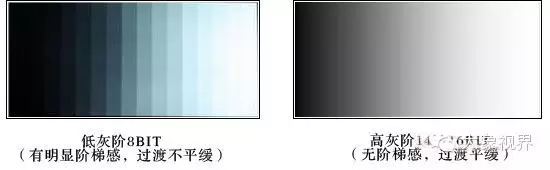 当显示屏上的图像层次感差,而且与素材对比出现了像素丢失的现象,说明此屏的灰度等级较低,无法完整清晰真实地呈现素材内容。其专业的测试方法就是灰度条的测试可以直观看出灰度等级的高低,目前行业内能做到16BIT的灰度等级,后续会达到18BIT,下图为灰度条测试图: