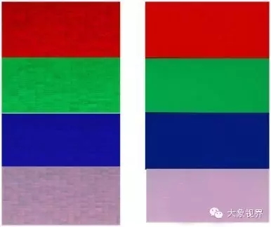 显示屏画面是否干净,无麻点、马赛克现象,这主要跟LED灯仔的亮度及颜色的一致性有关,我们可以通过测试屏体在RGB单色及白色状态下观看其亮度及颜色的均匀性,下图为测试及图像效果对比: