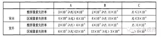 像素失控点分瞎点和常亮点,下图为行业为标准等级:
