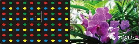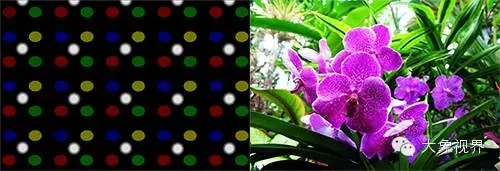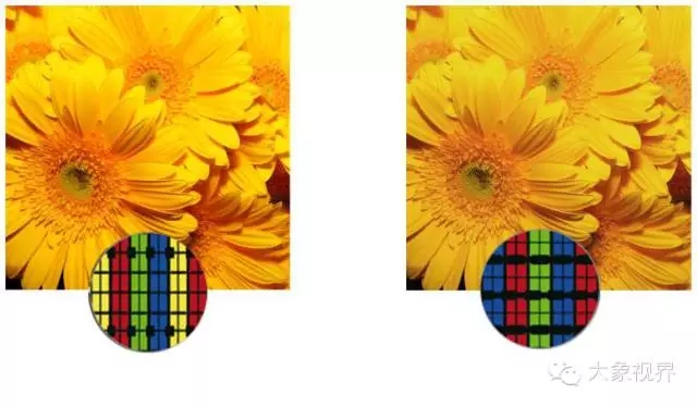 大象视界四基色技术(RGB+Y)采用四色滤光片在传统的红绿蓝(RGB)三原色加入了黄色Y,从而拉大了整个色域,由原来的三象素状态变成四象素状态,黄色的添加使得屏幕可以更加生动地再现黄色、金色这些依靠传统RGB三原色技术难以真实再现的色彩,使画面颜色看起来更多细节、更接近人眼所看到的真实色彩;当RGB三基色时,屏幕所能显示的颜色是65535的3次方,当RGB+Y时,屏幕所能显示的颜色是65535的4次方,因而色彩表现更精准。