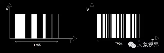 传统显示屏,占空比只有70%左右,大象视界的显示屏,占空比高达90%以上