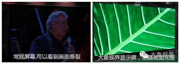 刷新频率是指LED显示屏显示数据每秒钟被重复显示的次数。刷新频率越高,图像显示越流畅稳定,人眼观看图像越舒适。目前国内通用技术架构的LED显示屏刷新率约为400Hz,靠近时会有闪烁的感觉,长时间观看眼睛容易不舒适。大象视界自主研发的LivePixels引擎,采用智能化高速逻辑控制芯片和创新的刷新控制算法,即使在8倍扫描倍数上仍然能够使刷新频率提高到3,200Hz以上,大幅提高视频播出的质量和效果,画面如影院般稳定流畅,人眼长时间观看也不会觉得疲劳。即使在专业的摄像机和高快门速度的照相机下,也无法捕捉到帧闪烁,拍摄的画面完整清晰、颜色还原正确,不会出现扫描线。